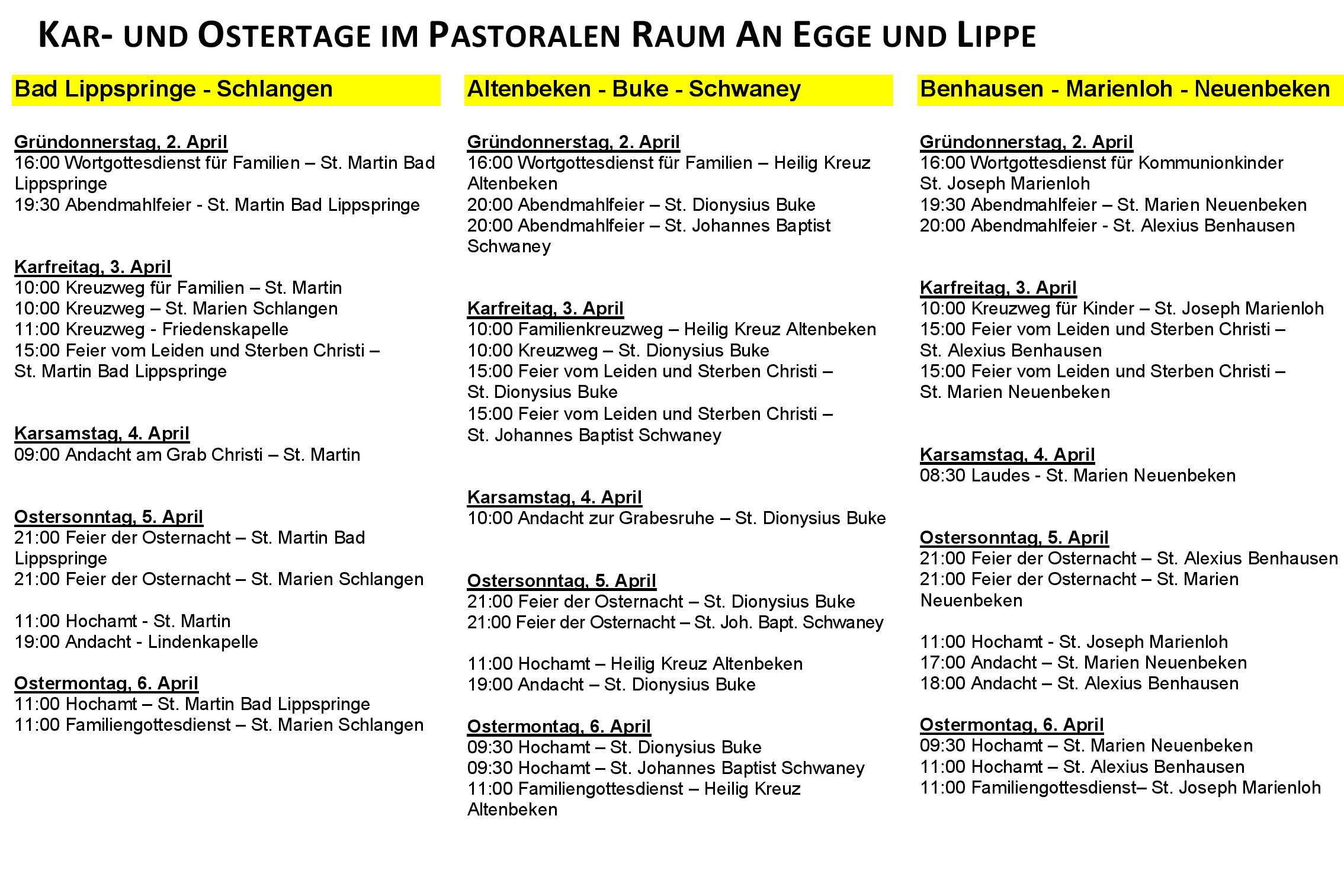Gottesdienste an den Kar- und Ostertagen im Pastoralen Raum An Egge und Lippe